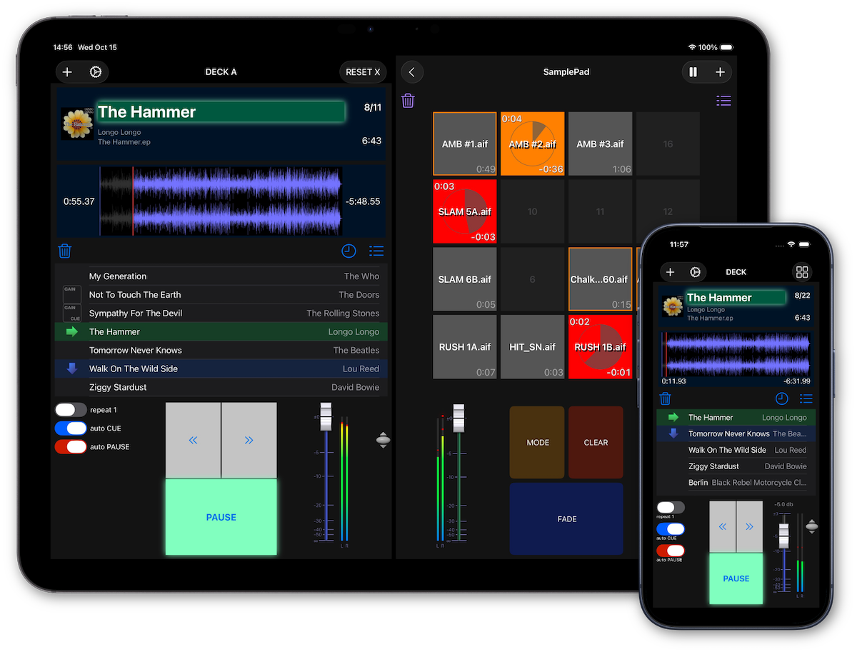 PlayBacker for iOS series are highly functional audio file player applications which has essential equipments for audio playback, like `Auto Pause`,`Auto Cue`,`Repeat` and more. They can load audio files from anywhere on your device, like `Music Library`,`App Storage` and `iCloud Drive`. PlayBacker for iPad also mounted the 'SamplePad' : pad styled sampler as standard equipment and the app got